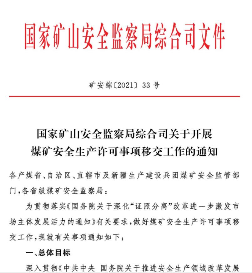 查看詳細(xì)煤礦安全生產(chǎn)許可事項(xiàng)移交省級(jí)煤礦安全監(jiān)管部門(mén)承擔(dān)國(guó)家礦山安監(jiān)局 2021…