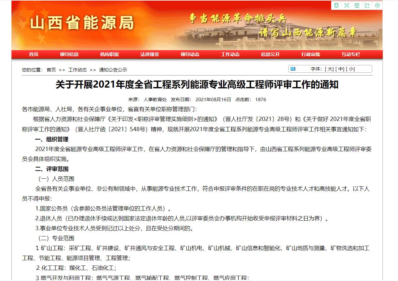 關(guān)于開(kāi)展2021年度全省工程系列能源專業(yè)高級(jí)工程師評(píng)審工作的通知