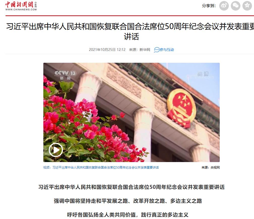 習(xí)近平出席中華人民共和國(guó)恢復(fù)聯(lián)合國(guó)合法席位50周年紀(jì)念會(huì)議并發(fā)表重要講話